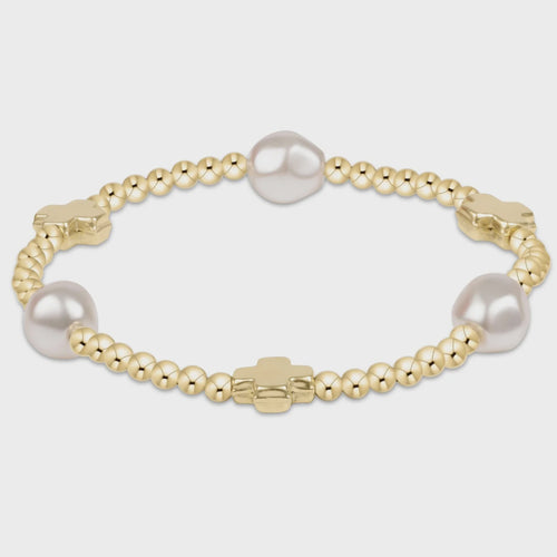 Signature Cross Admire Pearl Pattern 3mm Bead Bracelet - Gold